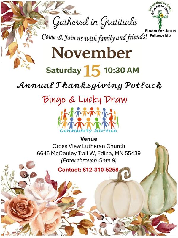Excited to celebrate an early Thanksgiving this year? Come and Join us with family and friends! We have tons of exciting things happening on 15th November, Saturday at 10:30 AM CST in Edina