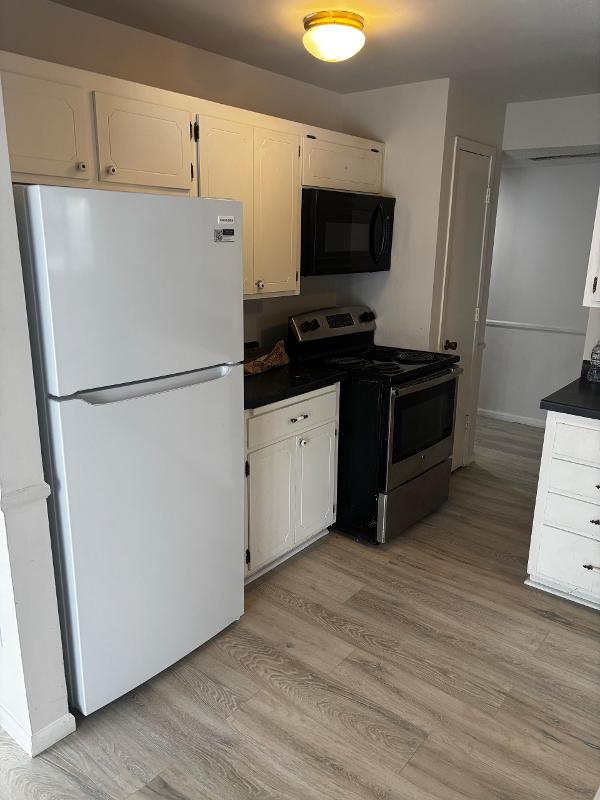 Renovated hard floor and refrigerator