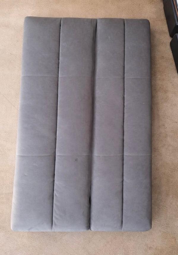 Beautiful grey upholstered sofa bed for sale. It easily folds down into a comfortable bed, perfect for guests or small spaces. 75$