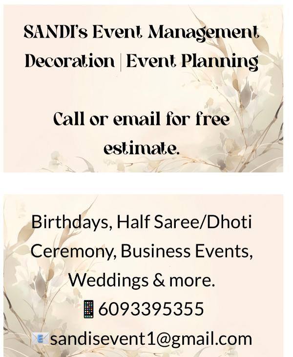 If you're looking for any decoration, floral arrangements, event management, and/or coordination needs for Weddings, Birthdays, House Warming, Half Saree/Dhoti Ceremony, Business Events & more, you're at the right place! All you have to do is call and we can discuss your budget and event request!