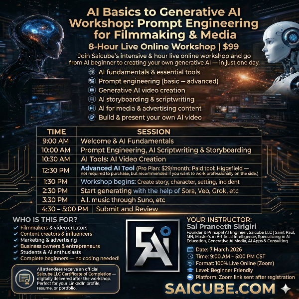 #ArtificialIntelligence #GenerativeAI #Filmmaking #PromptEngineering #AIVideo #ContentCreation #AIWorkshop #Saicube