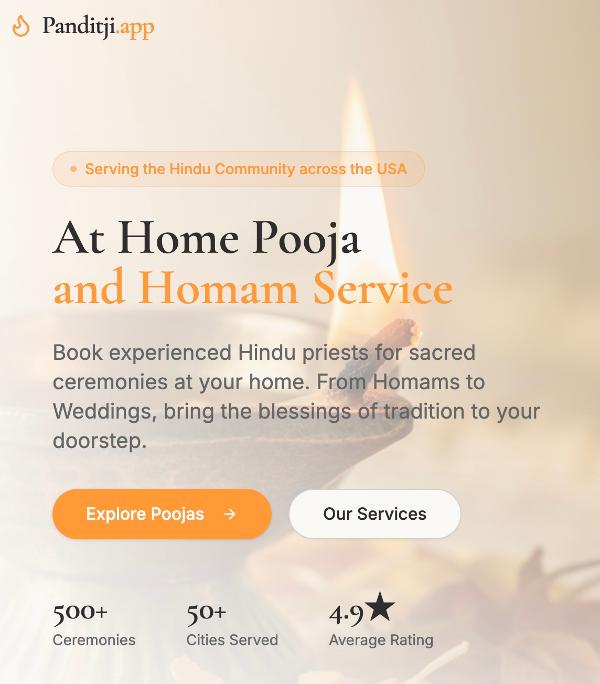 Book experienced Hindu priests for sacred ceremonies at your home. From Homams to Weddings, bring the blessings of tradition to your doorstep.