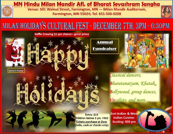 Please join the Milan Family to enjoy a fresh start of the Holidays and enjoy delicious ethnic delicacies and dinner, while you enjoy an evening of bollywood, classical dancing and singing - Date: Sunday, December 7th; Time: 3:00 pm to 6:30 pm. Your