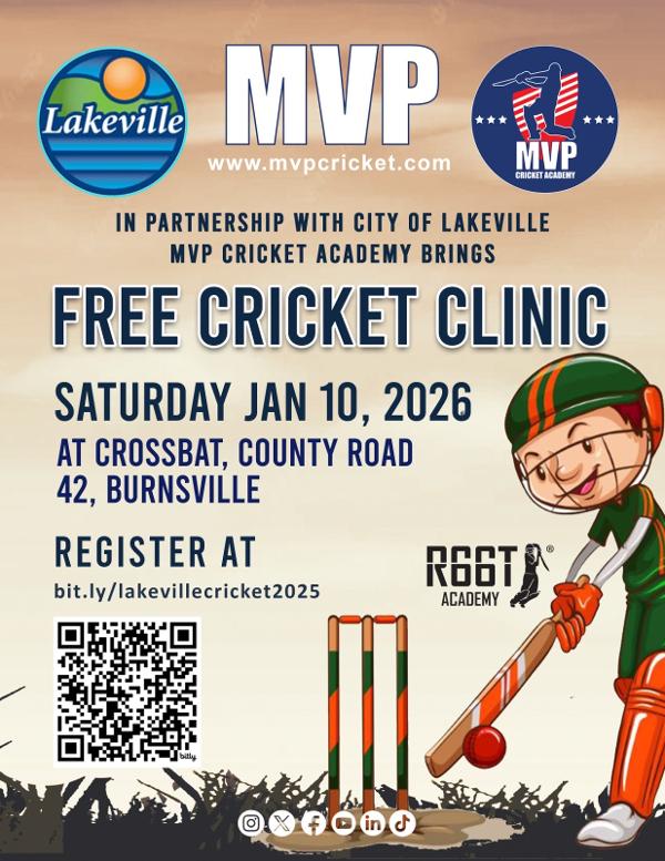 Give them a head start on a healthy 2026! MVP Cricket Academy and the @cityoflakevillemn are proud to present