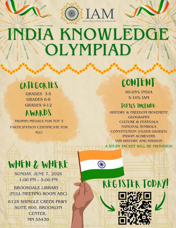 We are excited to invite your children to the first-ever IAM India Knowledge Olympiad! This written, multiple-choice in-person exam is a fun, low-pressure celebration of India's rich heritage, history, culture, and achievements.