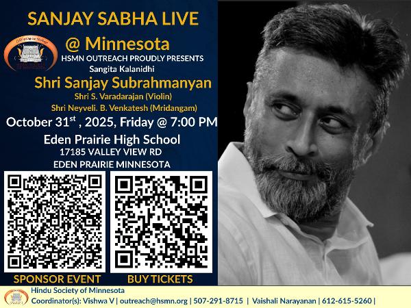 ? Be a Sponsor: https://hindu-society-of-minnesota-kiosk.myshopify.com/products/the-sanjay-subrahmanyan-concert-sponsorship?variant=46291592839331