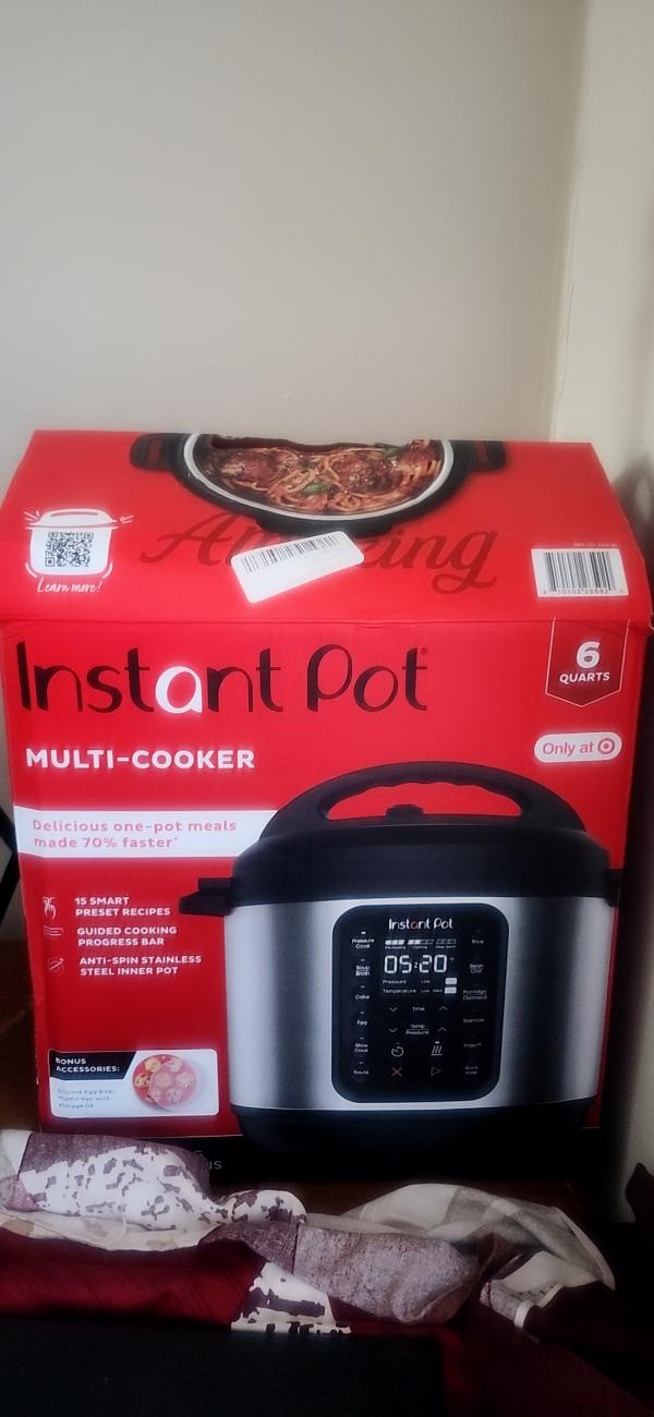 Brand new package, never used Instant pot 6qt 9-in-1 pressure cooker bundle for an immediate move out sale.