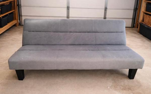 Beautiful grey upholstered sofa bed for sale. It easily folds down into a comfortable bed, perfect for guests or small spaces. 75$