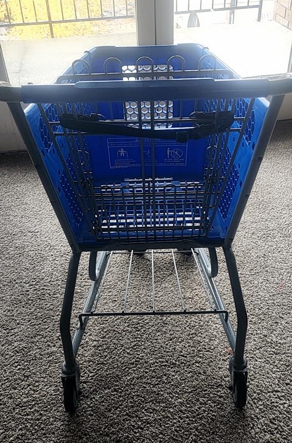 Standard size blue color shopping cart for multipurpose usage. Immediate move out sale. Size : W X L X H - 22×38×41"