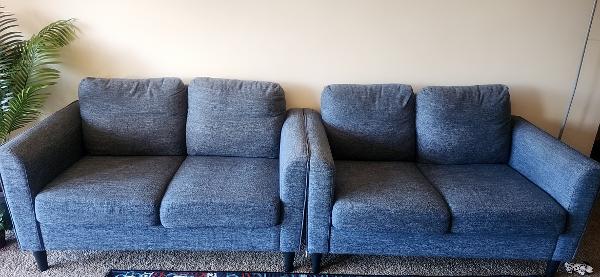 Set of two beautiful loveseat couch for your living room, blue in color. Good condition. Immediate move out sale. Must go by this month end or Nov mid.