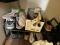 Rolling laptop / kitchen cart with charging dock, sofa tables, large dining table 6 chairs, lamps, decorative items, pots, pans, Curio's, leather sofa's , Full bed with Mattress, Twin bed, Queen be